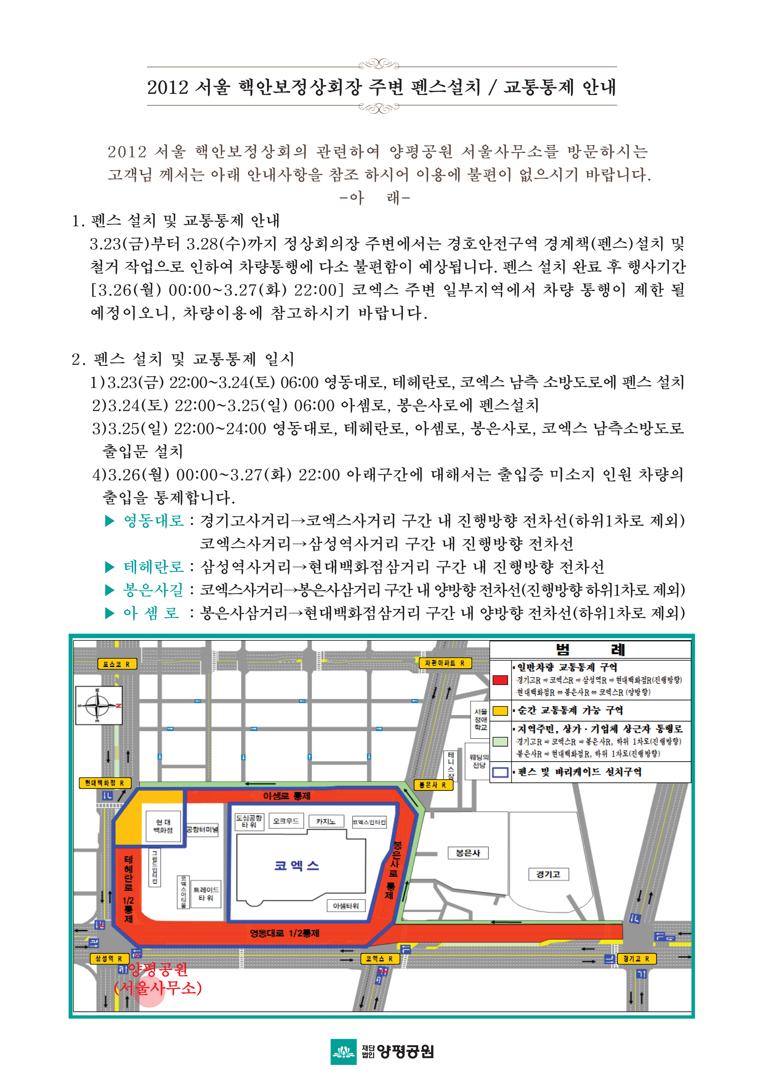 2012 핵안보정상회의 교통통제 안내