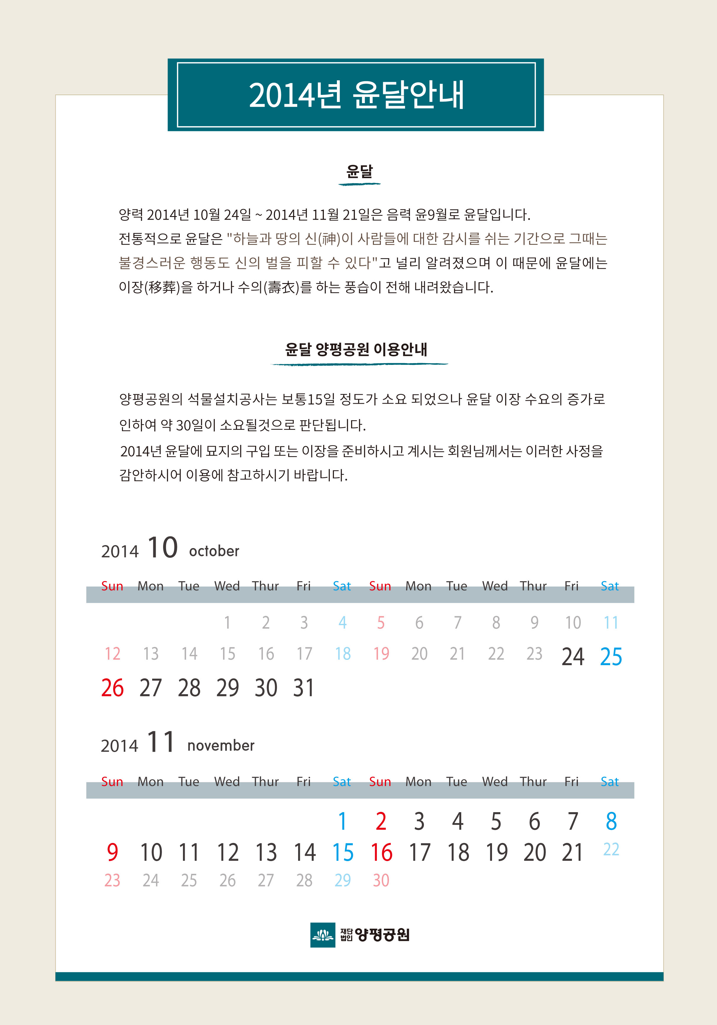 2014년 윤달안내