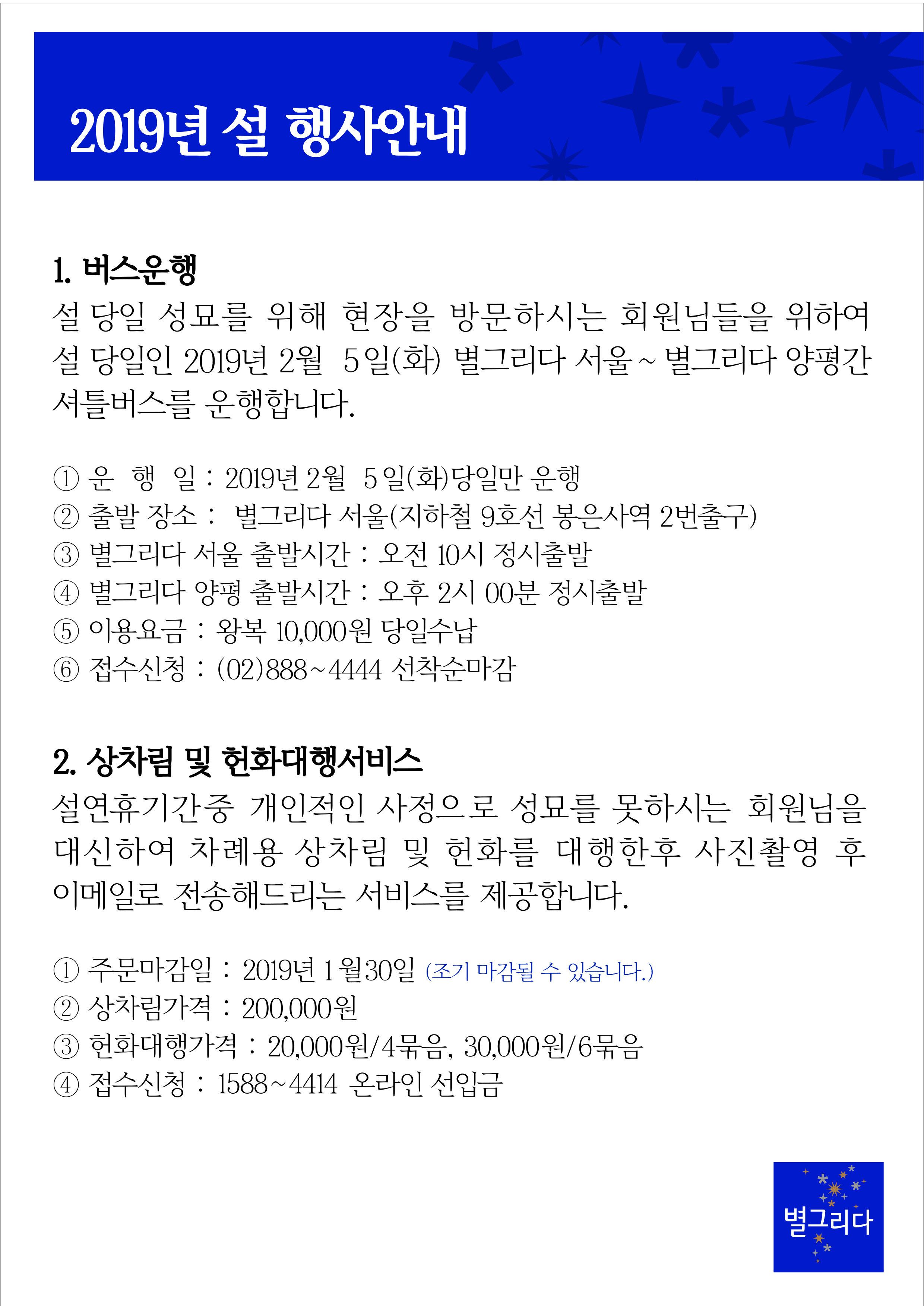 2019년 별그리다 구정행사 안내
